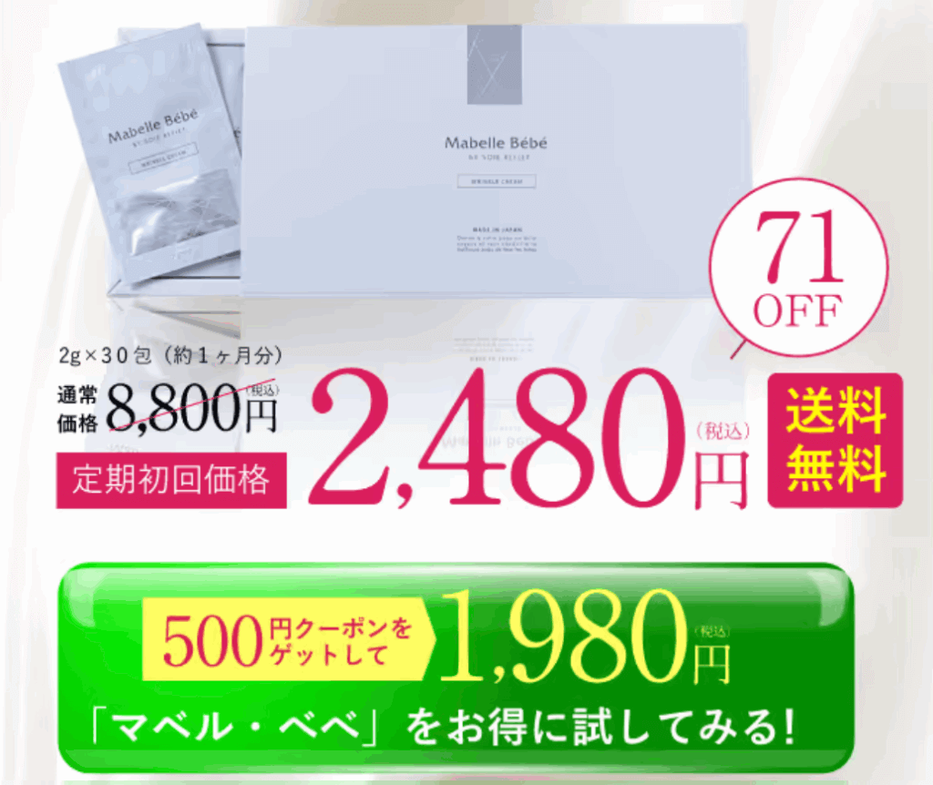 公式サイトのお得なページなら、初回購入は71%OFFの2,480円(税込)、さらに500円クーポンを使えば1,980円(税込)で購入できます。通常価格8,800円と比べると、かなりお得ですね。